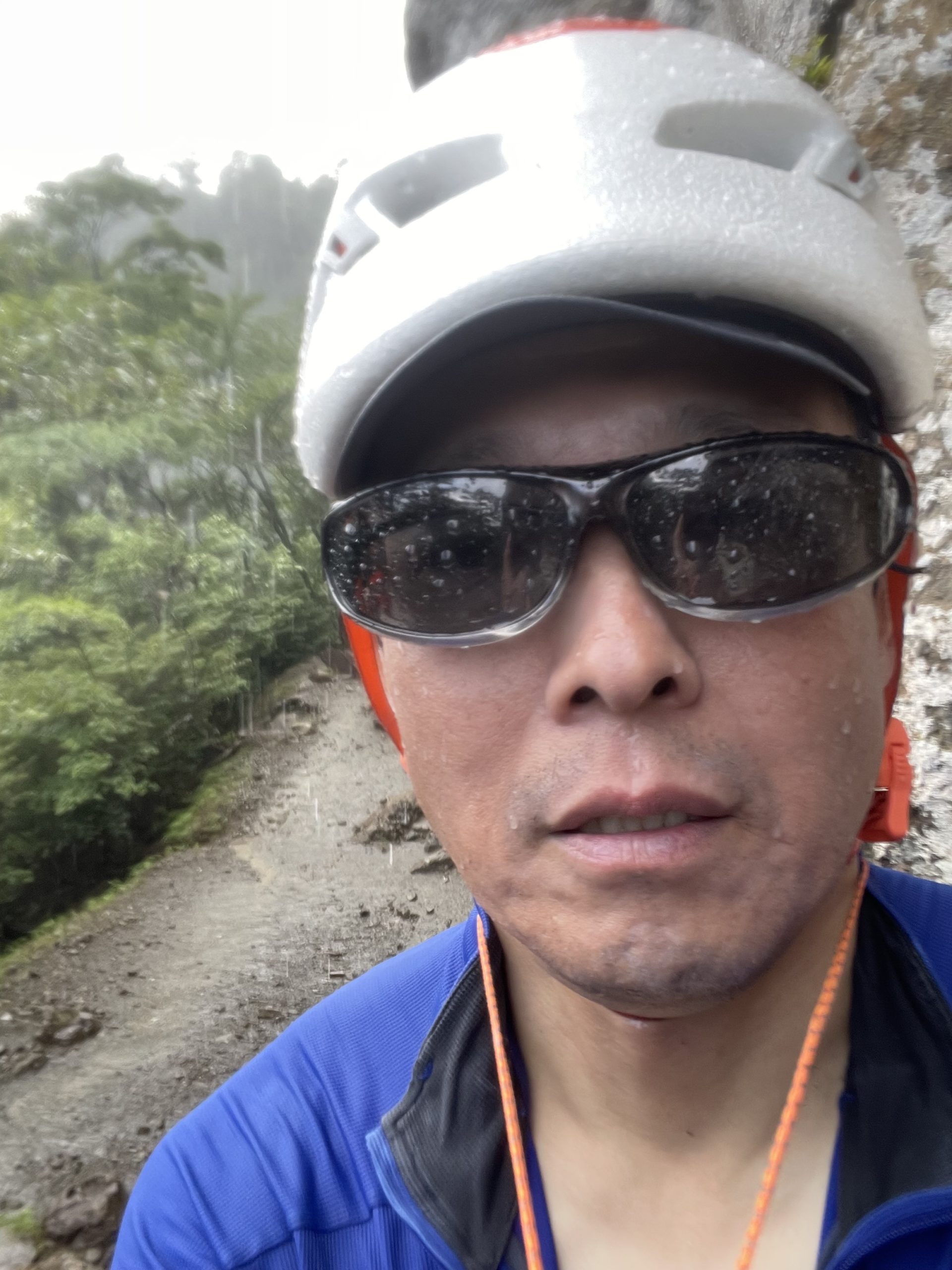 戻ることを決めて、雷雨の中で懸垂下降ができるようにセットして2ピッチの下降。