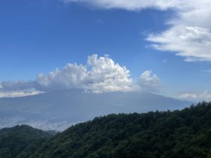 今日は富士山の高い所は雲に覆われています。