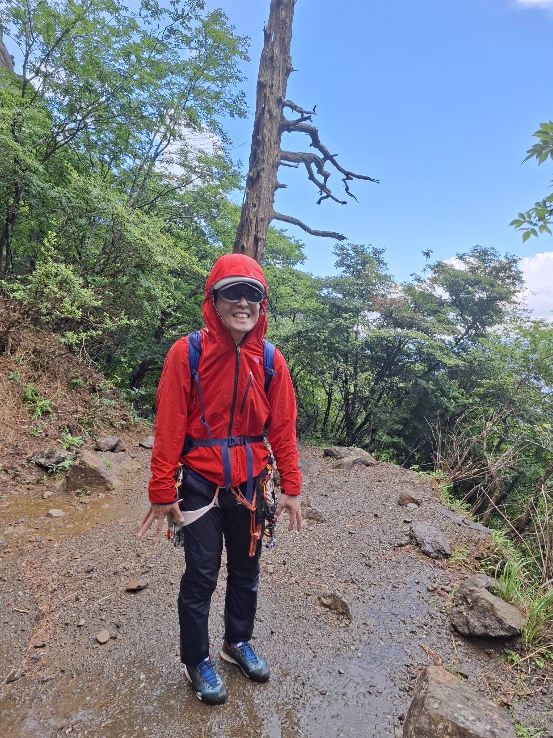 滝のようになった岩場を何とか下りました。