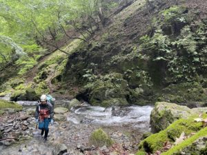 沢を抜けて靴を履き替える直前。