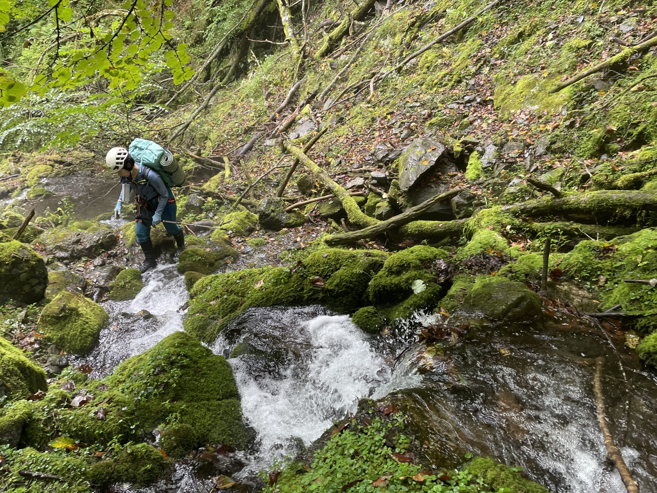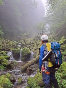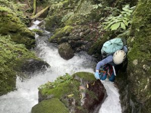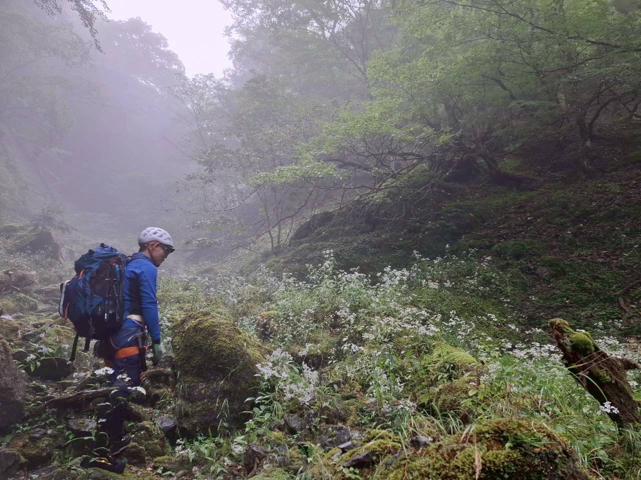 翌日は、緑一色の沢を詰め上がります。