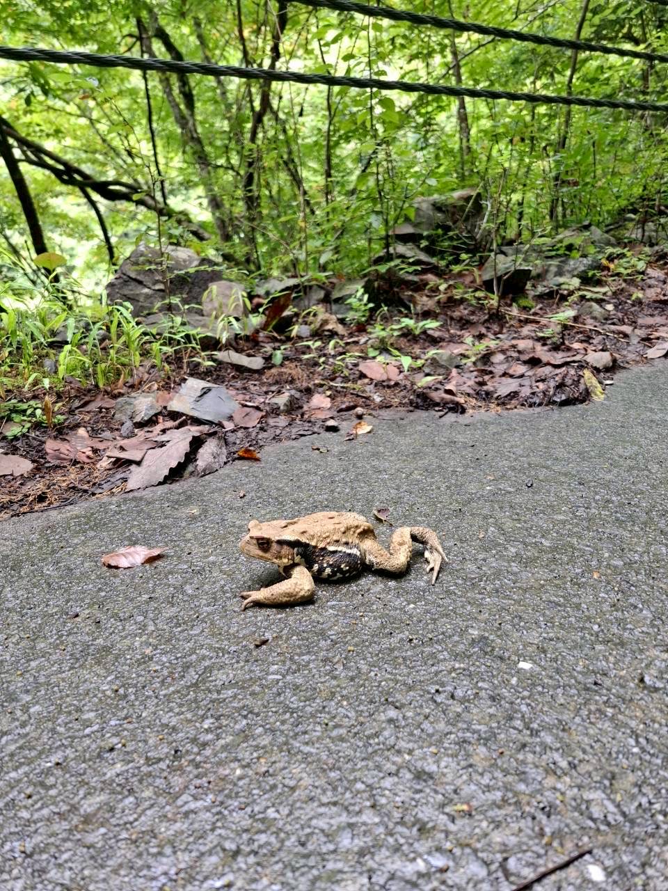 奥多摩の渓流まで林道を歩いていると、大きなヒキガエルとたくさん出会いました。