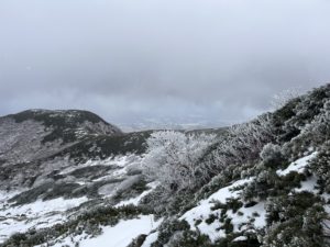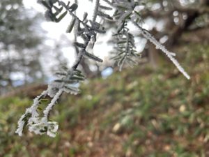 事前情報によると積雪は、2400mくらいからのようですが、低い標高でも霧氷がキレイです!