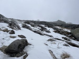爆風予報でしたが常時爆風でなく、間隔のあいた突風だったので行動&山頂到達できました。