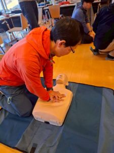 今回は、登山ガイド資格の更新研修のため、スタッフの右田さんとガイド仲間の後藤さんとでファーストエイド講習会を受講してきました。