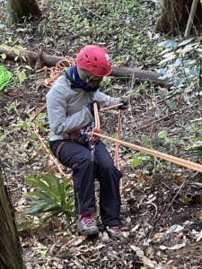 2日目は、いよいよ岩場(想定)に到着してから登って下りるをロープを使って実践します。