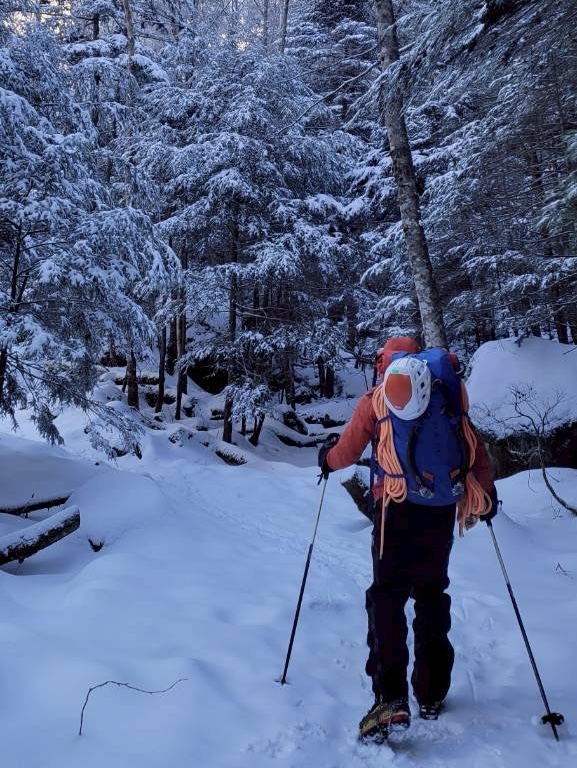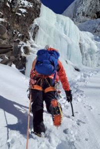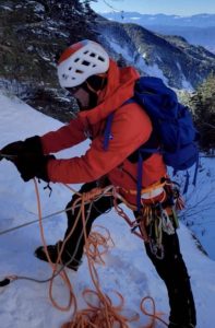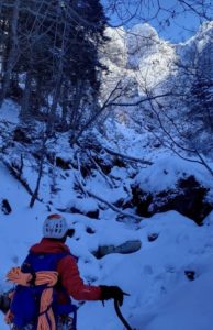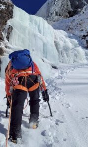 1つ目の氷瀑に着いてパートナーとロープを結びます。