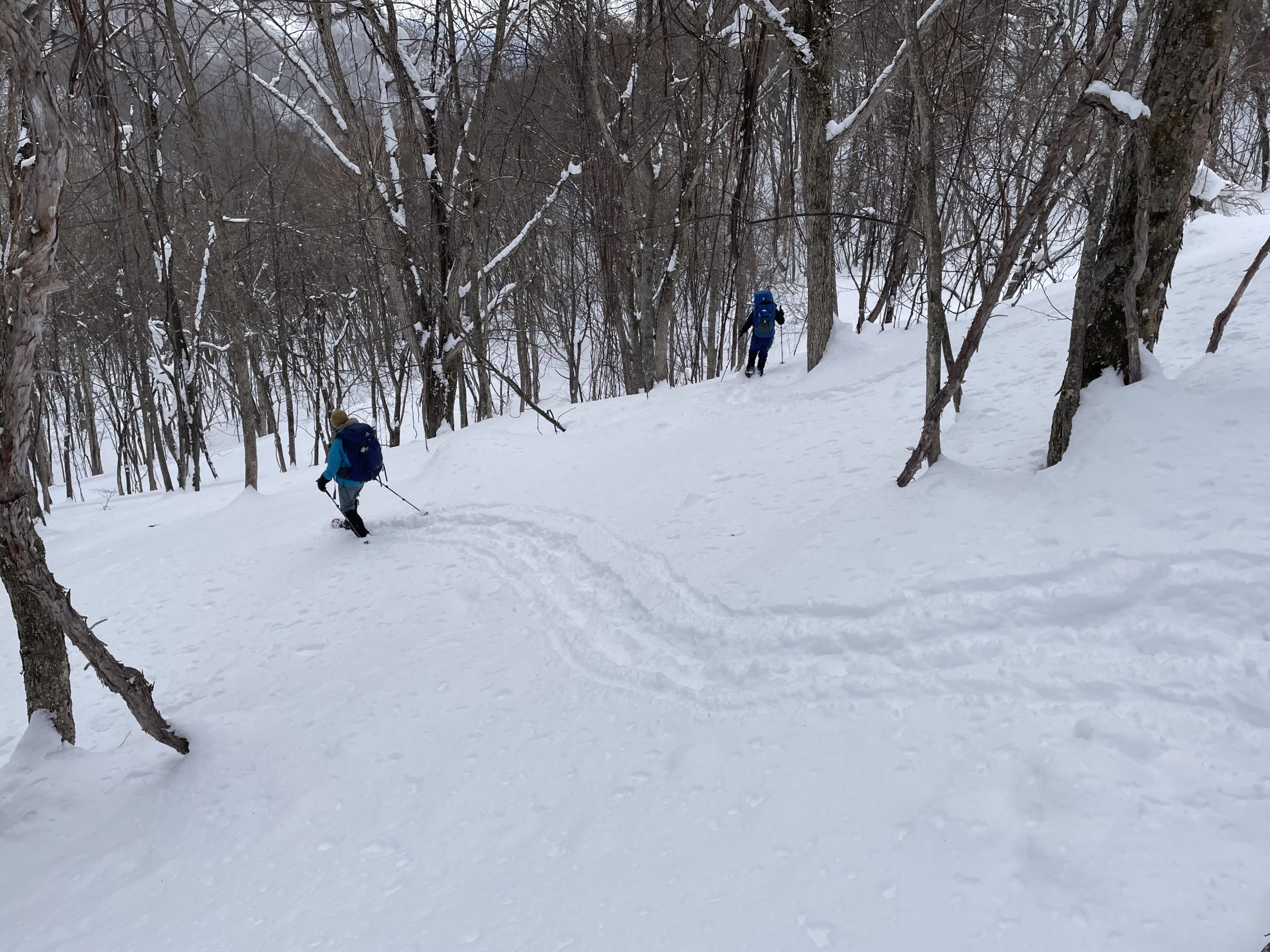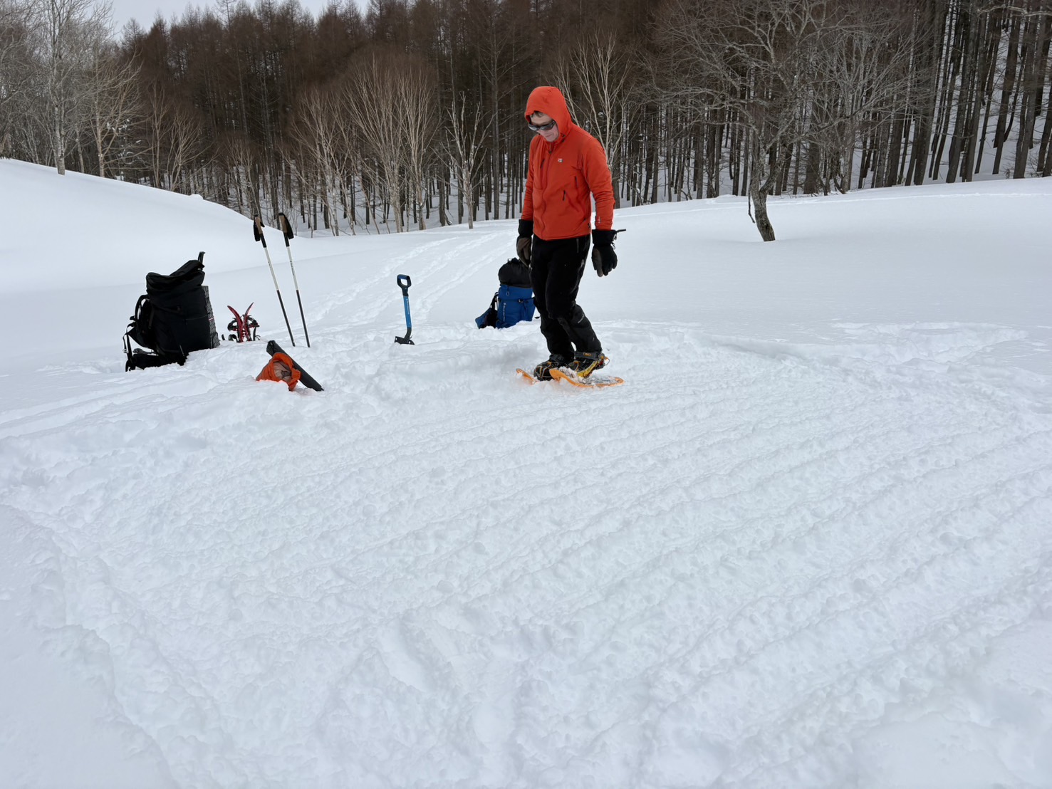 写真を見ると雪が多いですが、暖かい日があったせいで雪が一度融けて、固まるという・・・スノーシューのありがたみを感じにくい雪質でした。