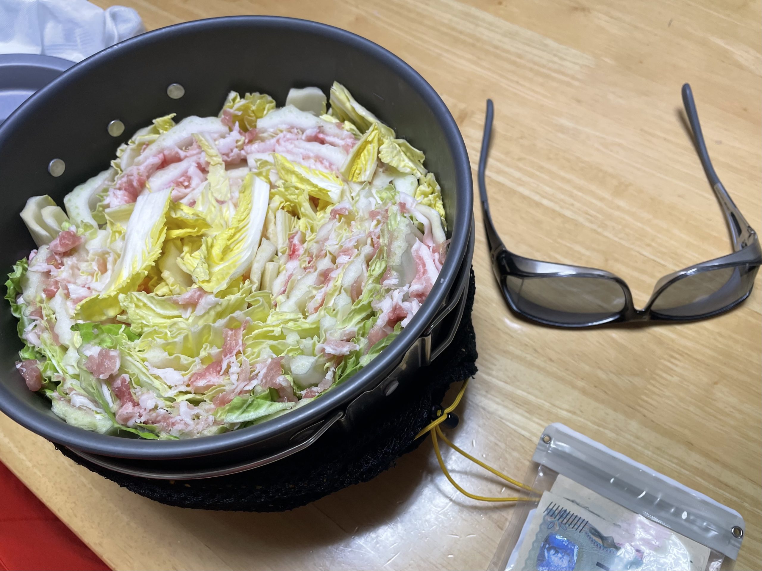 翌朝、昨夜に食べきれなかった食材を食べてからテントを撤収します。