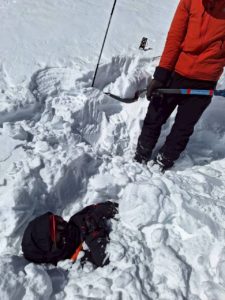 最後は、埋没者想定のビーコンを捜索し、ゾンデ棒でヒットさせるところまで行いました。