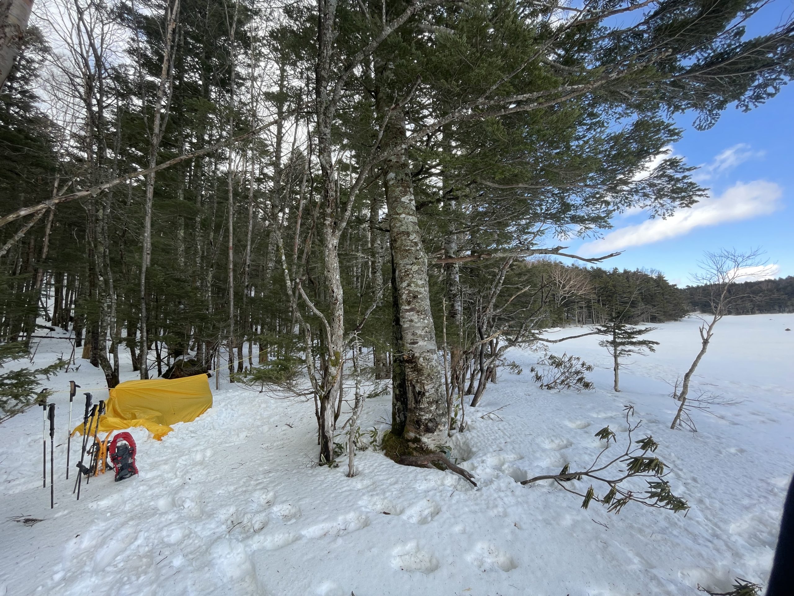 雨池までスノーシューで遊べるところを頑張って探して、誰も歩いていない雪の上を歩いて雨池に到着!